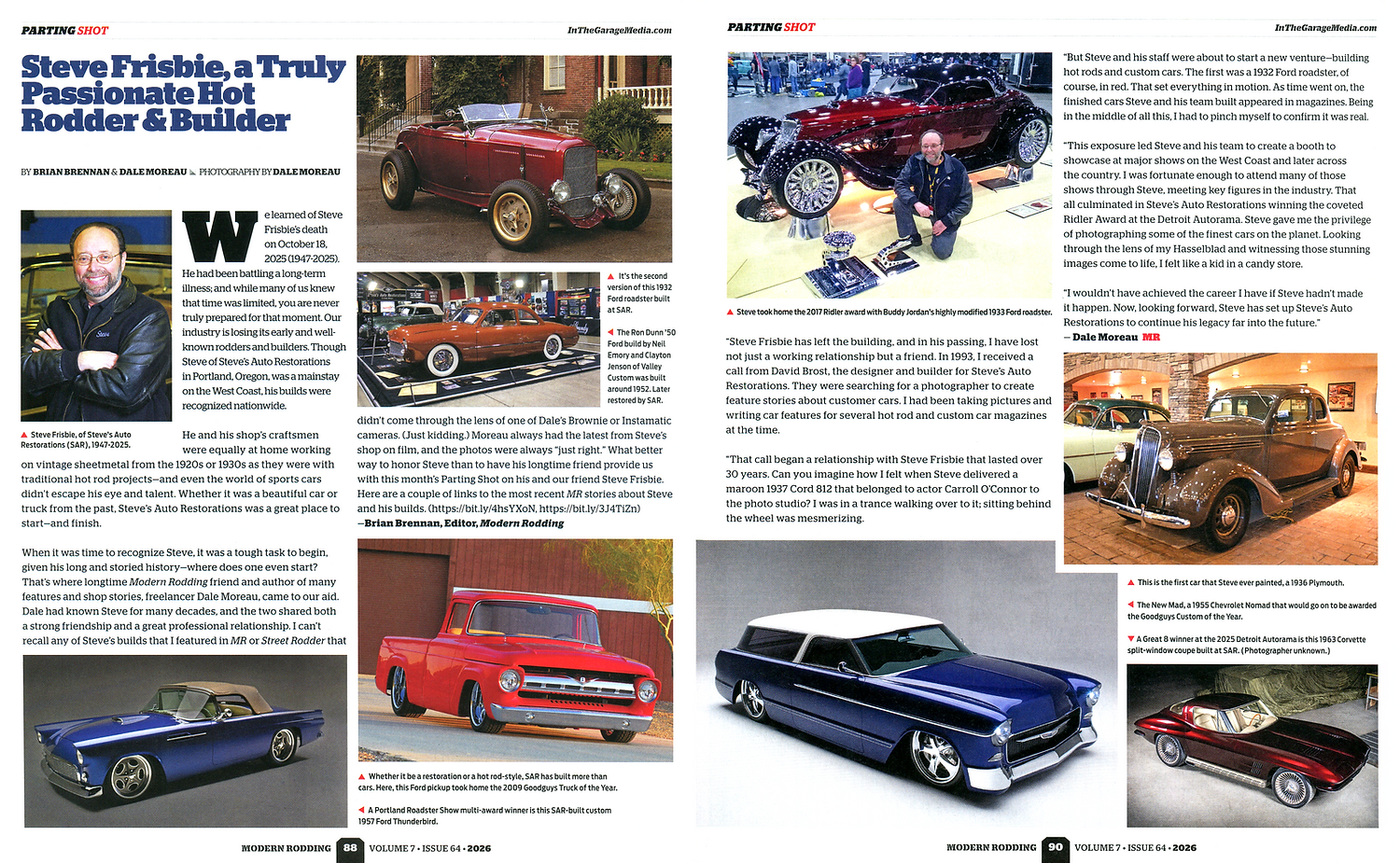 Recent tributes to Steve Frisbie from the automotive community as well as coverage of our most recent build, a 1963 Split Window Corvette Stingray.